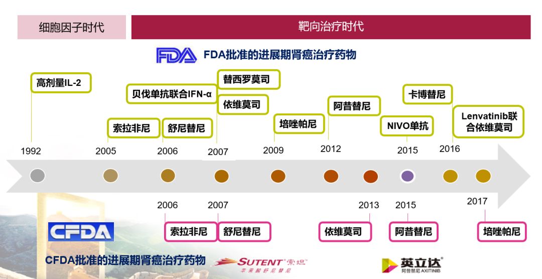 肾癌作为泌尿外科最常见的三大肿瘤之一,有着自身的特点,比如对放化疗不敏感,预后不良等。上个世纪八十年代,人们对于晚期肾癌几乎毫无办法,其5年生存率<10%,随后应用细胞因子治疗,但肾癌的缓解率仍然不高,大多数患者不能获得理想疗效,其总生存时间在半年到一年以内。